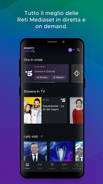 Mediaset Infinity TV es una aplicación gratuita para Android que ofrece una amplia variedad de contenidos multimedia. Con esta app, los usuarios pueden acceder a programas completos de Mediaset, así como a clips de video que abarcan diferentes géneros como entretenimiento, ficción, deportes y documentales. La interfaz es intuitiva, lo que facilita la navegación entre las diferentes categorías y la búsqueda de contenido específico.